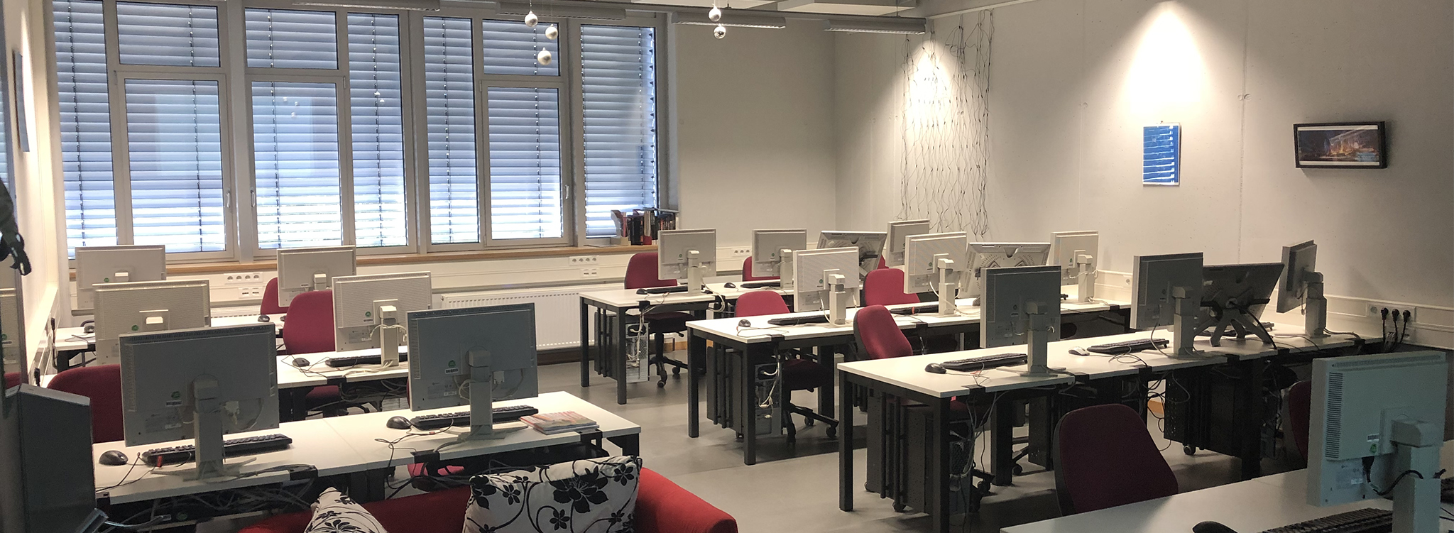 Im Labor stehen 20 Grafikworkstations zur Verfügung. Die Rechner können außerhalb der regulären Veranstaltungen für Projektarbeiten verwendet werden. Außerdem verfügt das Labor über mehrere 21-Zoll Grafiktablets der Firma Wacom und ein Motion-Capture-System mit zehn IR-Kameras. Seit kurzem sind auch zwei HTC Vive sowie ab dem Sommersemester 2020 eine Oculus Quest im Pool des Labors. Die neuen HMDs werden sowohl in dem Wahlpflichtfach "Virtual Reality & Games" als auch in gemeinschaftlicher Projektarbeit in der Veranstalrtung "Teamprojekt" eingesetzt. Aufwändige Renderaufgaben können auf einer kleinen Renderfarm mit vier RenderCubes ausgelagert werden.